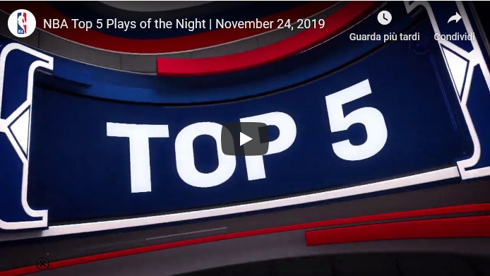Le 10 TOP giocate della notte NBA del 25 novembre. Una selezione di stoppate, schiacciate e tiri al limite.
