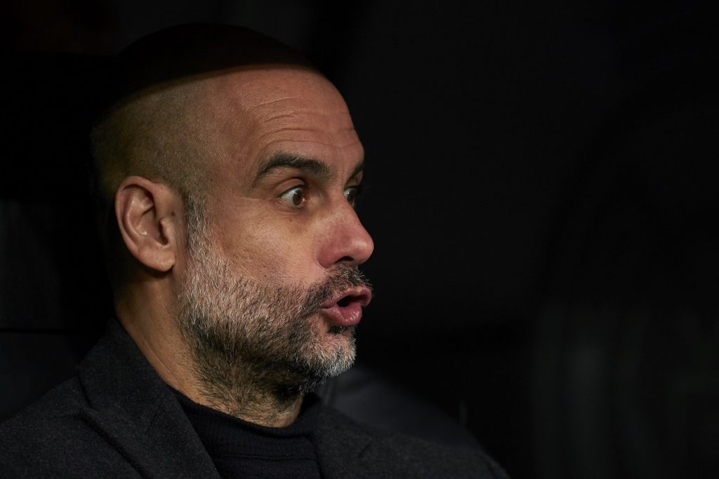 MADRID, SPAIN – FEBRUARY 26: Josep Guardiola, Manager of Manchester City reacts prior to the UEFA Champions League round of 16 first leg match between Real Madrid and Manchester City at Bernabeu on February 26, 2020 in Madrid, Spain. (Photo by Mateo Villalba/Quality Sport Images/Getty Images)