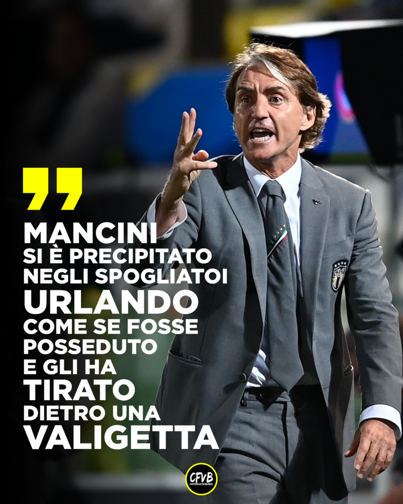 Dieci secondi dopo, Mancini si è precipitato nello spogliatoio, imprecando e urlando a squarciagola in italiano, mulinando le braccia come fosse posseduto e impazzendo mentre la partita andava avanti”