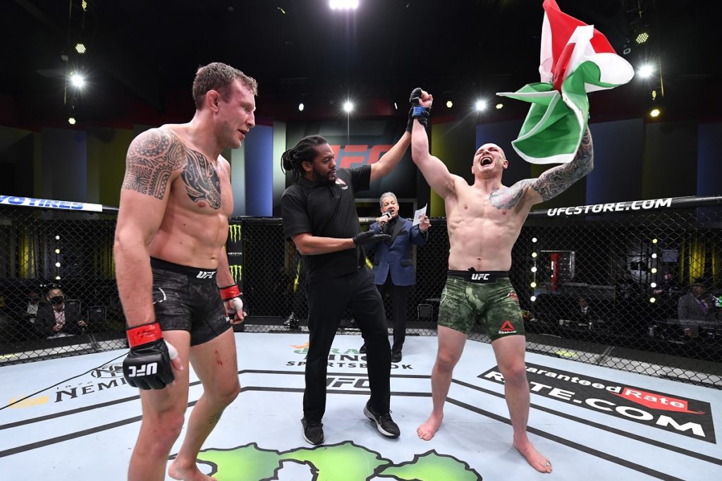 LAS VEGAS, NEVADA – DECEMBER 05: Marvin Vettori of Italy reacts after his unanimous-decision victory over Jack Hermansson of Sweden in a middleweight bout during the UFC Fight Night event at UFC APEX on December 05, 2020 in Las Vegas, Nevada. (Photo by Chris Unger/Zuffa LLC)