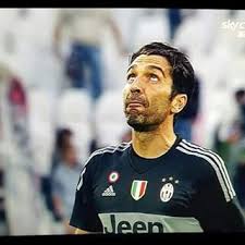 Gigi Buffon mentre cerca di ristabilire le gerarchie lassù nel post partita.