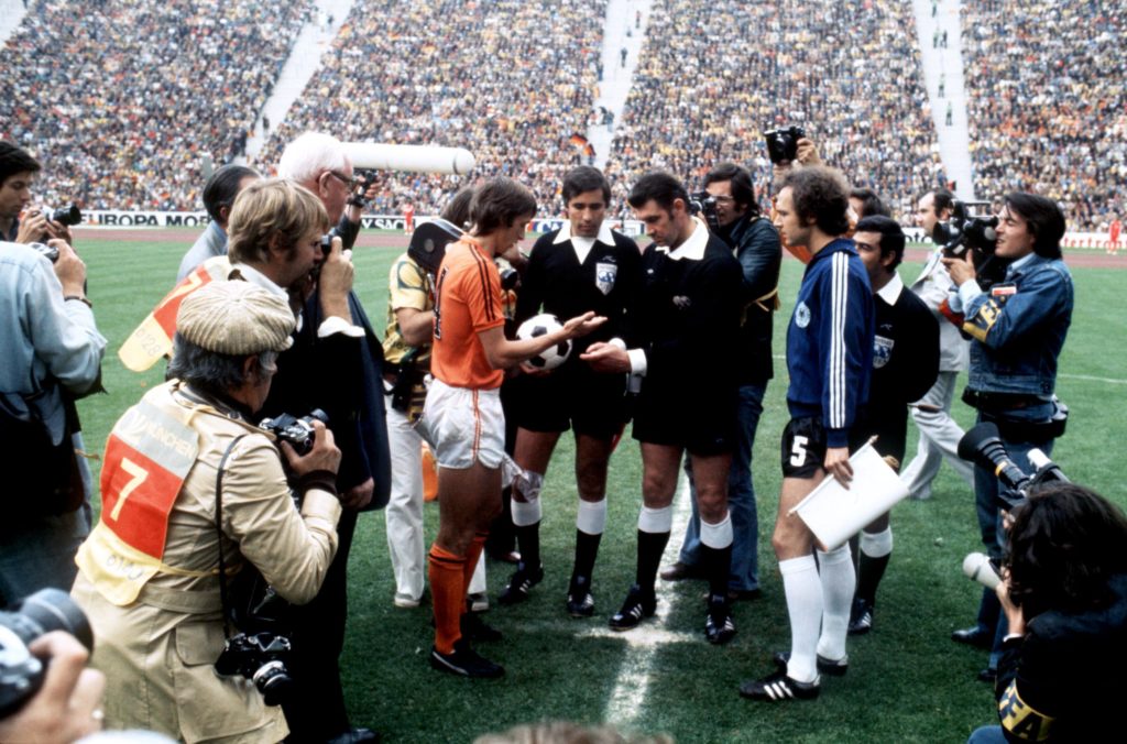 Ma l’apice del Calcio totale non fu l’Ajax del triennio 1971-1973, ma la Nazionale olandese che prese parte al Mondiale del 1974 dove impressionò tutto e tutti arrivando fino alla finale del 7 luglio dove affrontò i padroni di casa della Germania Ovest perdendo 2-1, ma andando in gol con Neeskens dopo due minuti con il primo rigore assegnato in dieci edizioni in una finale mondiale. Alla guida di quella Nazionale (che dal calcio d’inizio al fischio del rigore non fece toccare la palla agli avversari per oltre un minuto ) c’era per l’occasione Michels e Cruijff ne era il capitano.