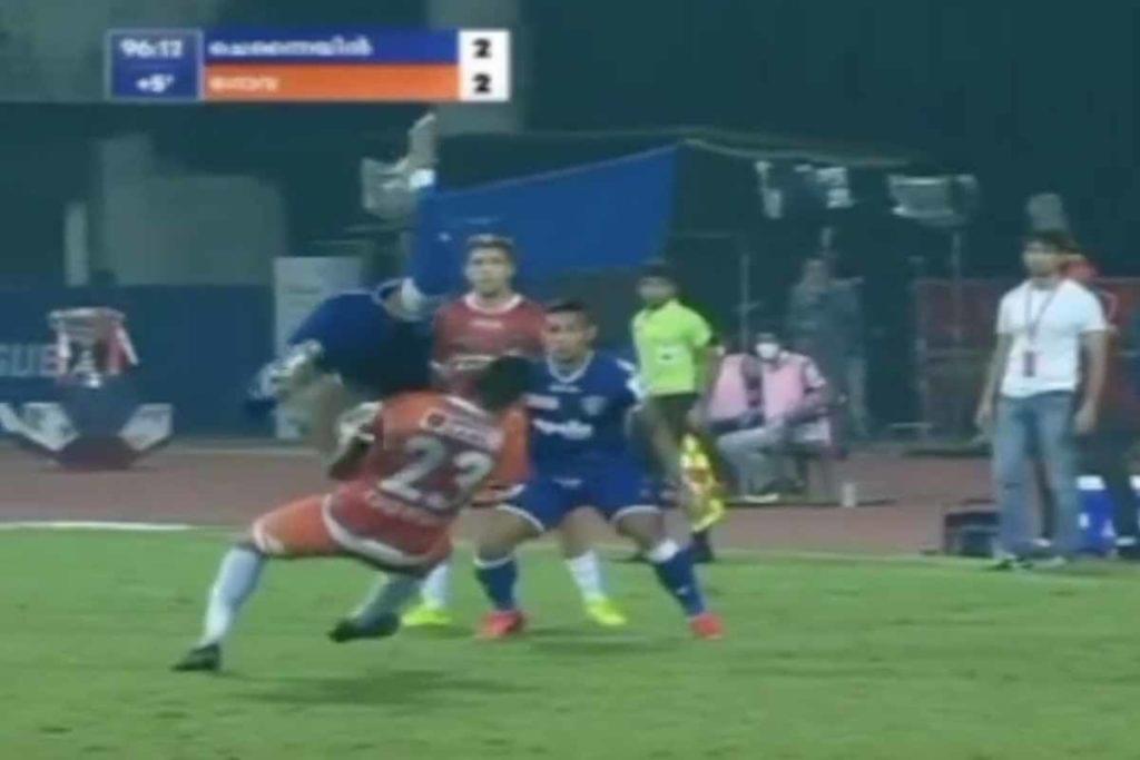 A vedere queste scene non ci può che tornare alla mente il gesto del Pistolero contro la nostra nazionale nei Mondiali brasiliani del 2014. Questa volta è successo nel piccolo campionato indiano, nella sfida tra Chennaiyin FC e FC Goa. Un gesto folle che non si dovrebbe mai vedere nel campi di calcio, a prescindere dalla categoria.