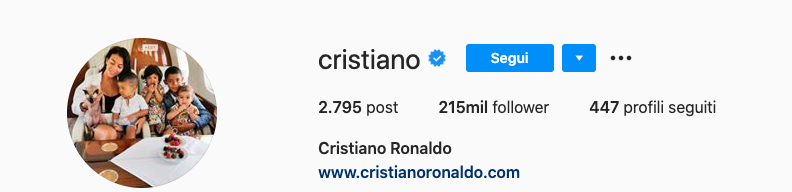 Cristiano Ronaldo oggi conta solo su Instagram 215 milioni di persone che lo seguono.