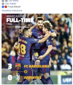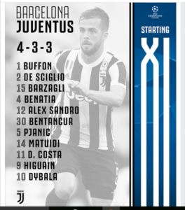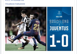 Fuori Neymar e Bonucci, dentro Dembelè e De Sciglio. La Juve fa un primo tempo in cui crea e rischia il gol del vantaggio proprio con l’ex milanista, ma un infortunio muscolare lo costringe al cambio e la Juventus prende gol proprio allo scadere da uno stratosferico Messi. La ripresa è devastante: due gol in meno di 10 minuti e il remake sembra quello della finale di Cardiff col Real Madrid, ma in realtà è solo il Barcellona che vuole restituire il 3-0 maturato solo pochi mesi fa a Torino.
