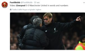 Partita piena di aspettative, il Liverpool ad Anfield si esalta, lo United ha uno dei migliori attacchi d’Europa: infatti finisce 0-0. In un clima infernale si gioca il big match inglese che vede entrare lo United di Josè con delle maglie che farebbero brutto anche al torneo parrocchiale della domenica, mentre il Liverpool si presenta con le solite divise rosse. Il match inizia alle 13:30 in Italia con il fuso orario che coglie di sorpresa anche i tifosi che sono costretti a guardarsi la partita con mezzo chilo di pasta in bocca. Chiaramente fra over 2,5/goal/1/2 le schedine le hanno perse tutti.