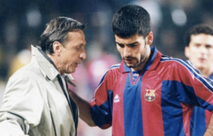 Da allenatore in campo, non poté che allenare anche…in panchina: fece tornare vincente l’Ajax tra il 1985 al 1988, ma scrisse una grande pagina di calcio a Barcellona, allenando quella squadra che divenne il Dream team del calcio. Tra i suoi allievi prediletti, uno che scriverà anni dopo una grande pagina di calcio in panchina, Josep Guardiola, quello che con il tiki taka ha portato il Calcio totale negli anni Duemila.