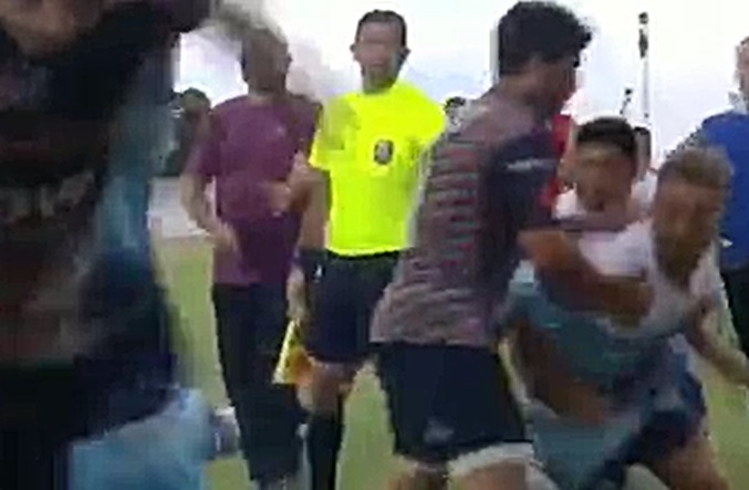 A centrocampo si consuma uno degli episodi di “NON calcio” del momento. Un’entrata alla Rey Mysterio scatena l’ira della squadra avversaria.