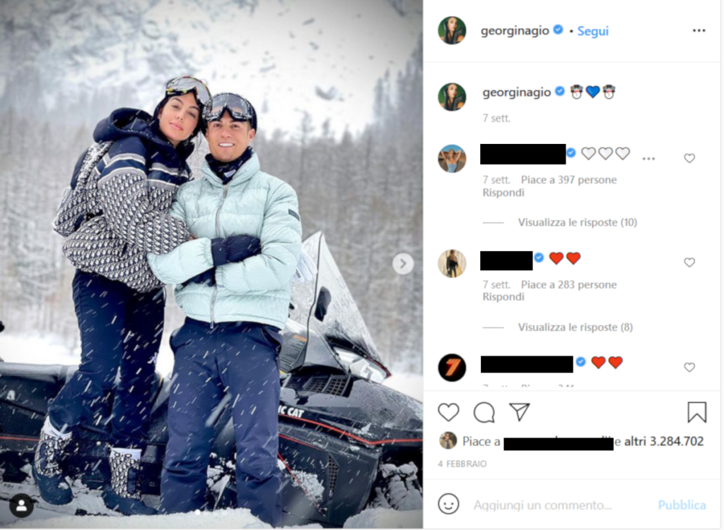 Sfruttando la popolarità di Cristiano Ronaldo, Georgina ha saputo costruirsi una fanbase davvero consistente sui social. Sul suo canale Instagram (@georginagio) può vantare ben 24 milioni di follower. Un numero pazzesco, soprattutto se pensiamo che influencer nostrane come Belen Rodriguez e Diletta Leotta non raggiungono i 10 milioni, che la rende una delle modelle più ambite dai marchi di moda.